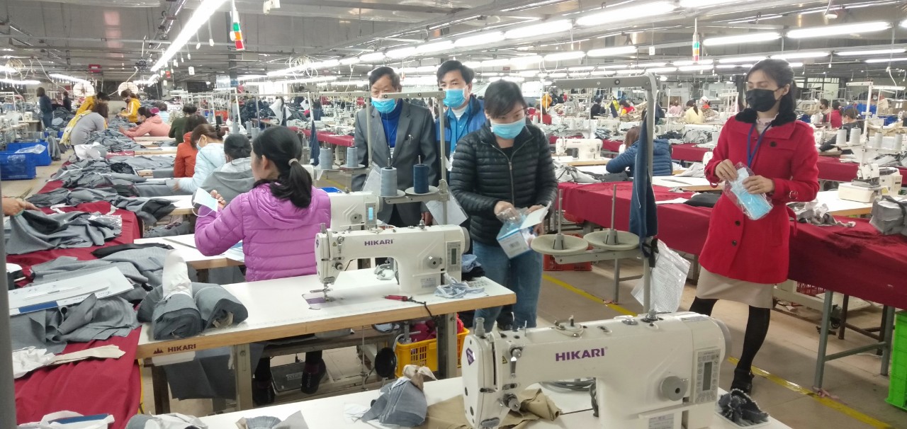 Bộ phận y tế công ty CP May xuất khẩu Trường Thắng phát khẩu trang y tế cho công nhân lao động