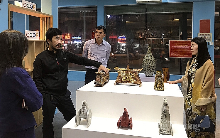 Khách hàng tham quan Triển lãm chuyên đề các sản phẩm thủ công mỹ nghệ ngành sơn mài - khảm trai và các sản phẩm OCOP, công nghiệp nông thôn tiêu biểu năm 2021