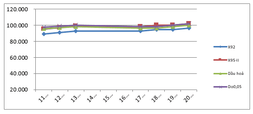 (Chi tiết tại bảng thống kê giá thành phẩm xăng dầu thế giới giữa hai kỳ điều hành)