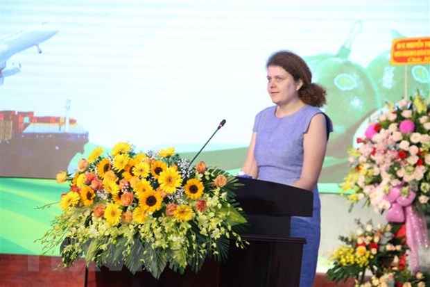 Bà Sarah Gilleski, Tùy viên Nông nghiệp Đại sứ quán Hoa Kỳ tại Việt Nam, phát biểu tại buổi lễ. (Ảnh: Công Trí/TTXVN)