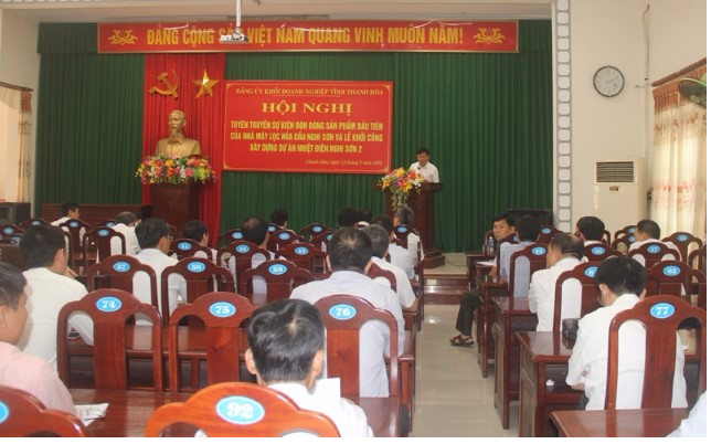 Chiều 11-5, Đảng ủy Khối Doanh nghiệp tỉnh tổ chức hội nghị tuyên truyền lễ khởi công xây dựng Dự án Nhiệt điện Nghi Sơn 2 và sự kiện đón dòng sản phẩm đầu tiên của Nhà máy Lọc hóa dầu Nghi Sơn; các cơ chế, chính sách ưu đãi, hỗ trợ của tỉnh Thanh Hóa đối với nhà đầu tư, doanh nghiệp đầu tư vào Thanh Hóa , trọng tâm là Khu Kinh tế Nghi Sơn và các Khu Công nghiệp (KKTNS&CKCN) tỉnh Thanh Hóa.
