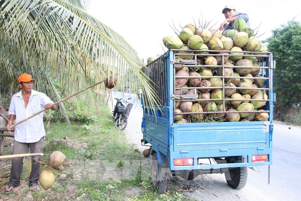 Hiện giá dừa khô nguyên liệu trên địa bàn tỉnh Bến Tre giảm còn 50.000-60.000 đồng/chục (12 trái), thấp hơn 30.000 đồng so với tháng trước và thấp hơn 50.000 đồng so với 6 tháng qua.