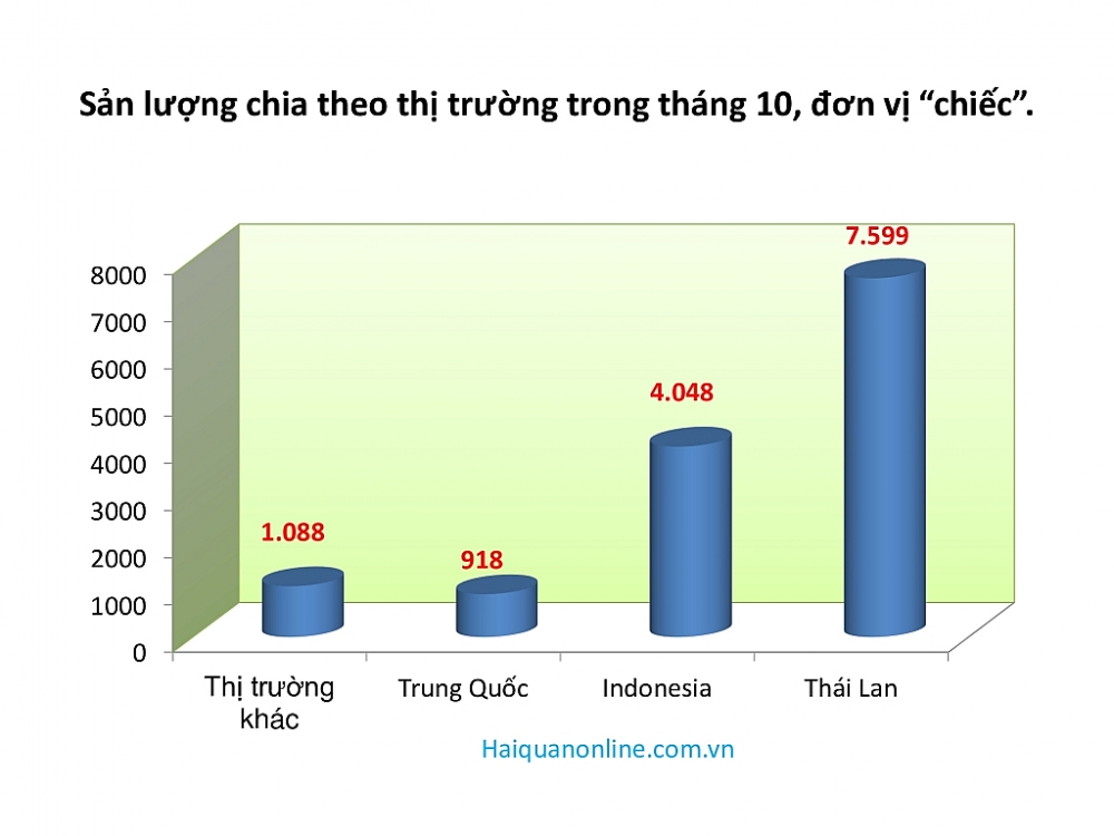 Thái Lan, Indonesia và Trung Quốc chiếm vị thế áp đảo về nhập khẩu ô tô của Việt Nam trong tháng 10 với tỷ trọng lên đến 92% tổng sản lượng của cả nước.